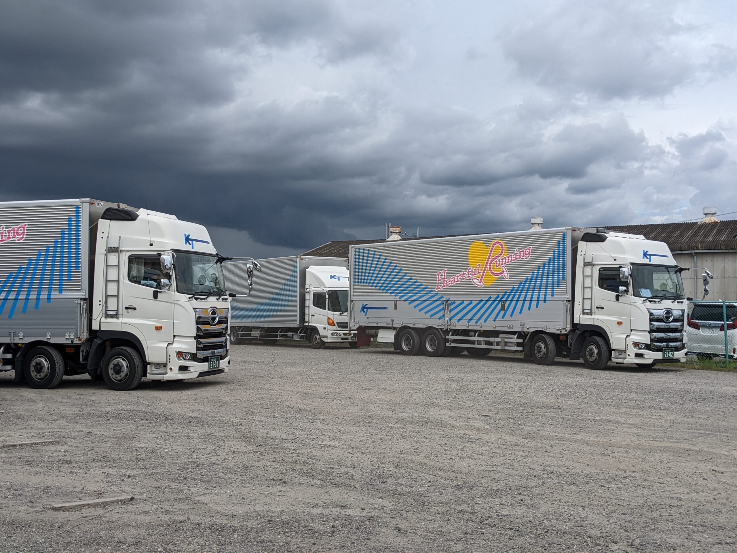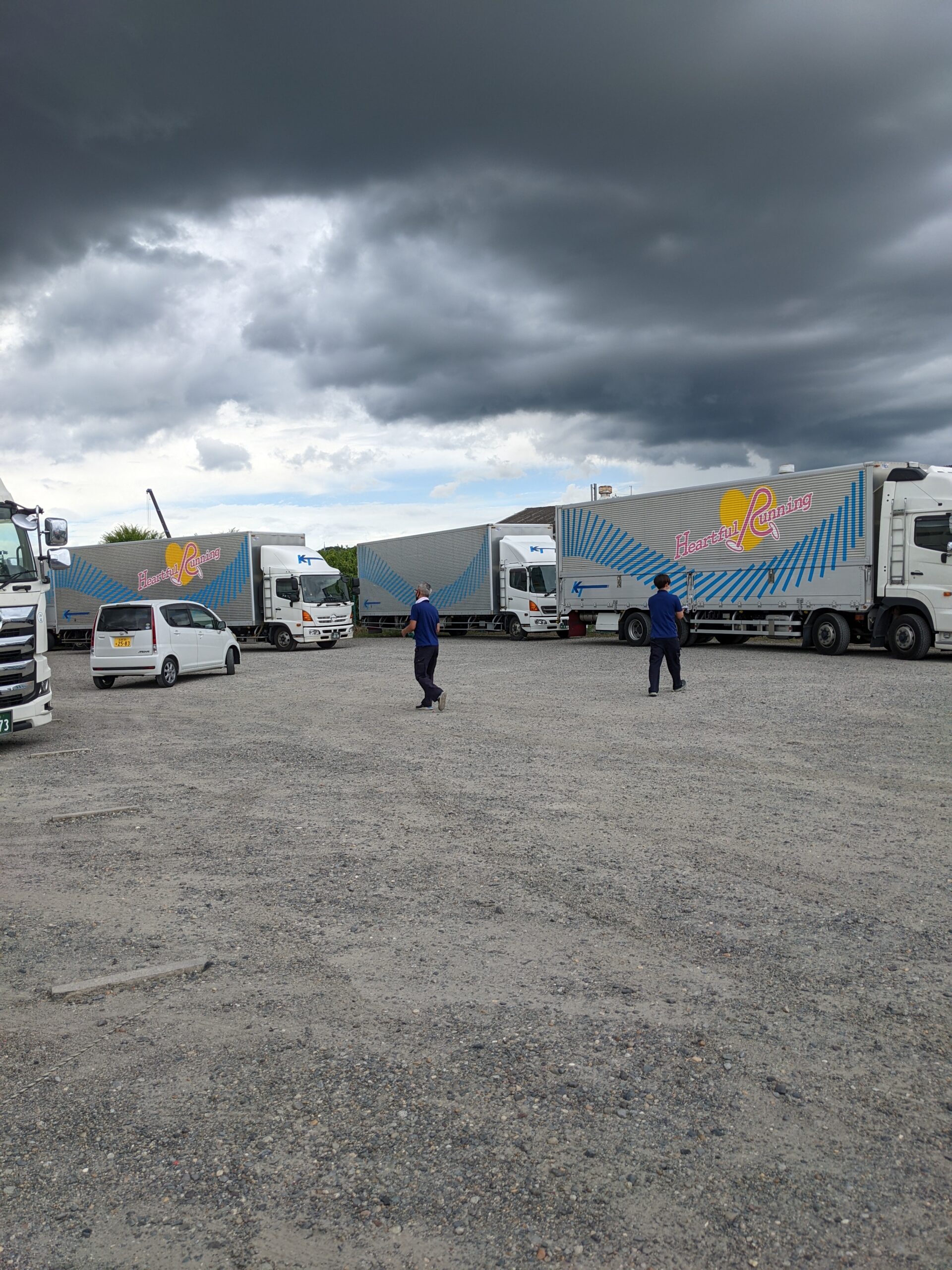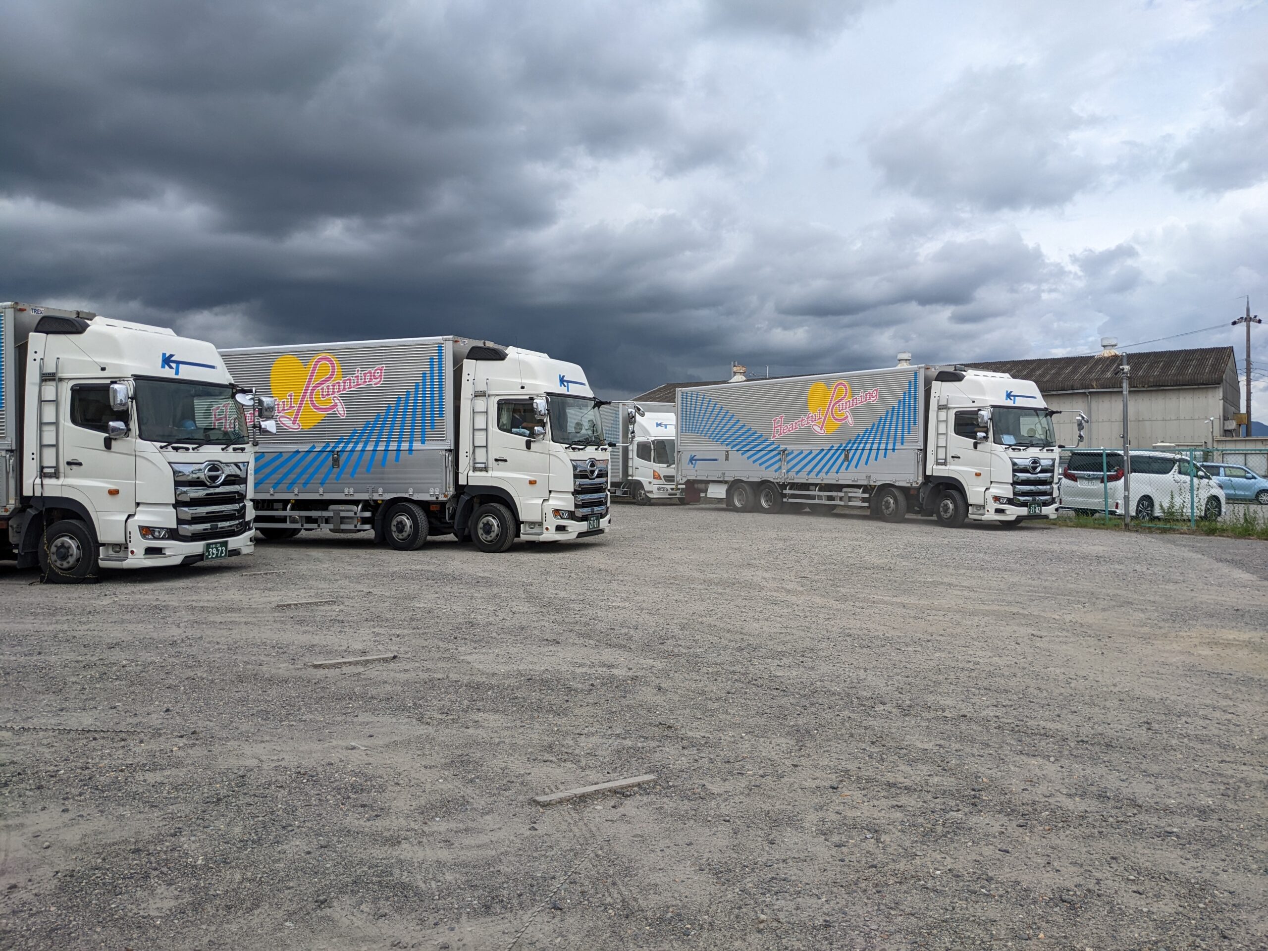 お盆休み前、京都車庫に続々とトラックが帰ってきました。