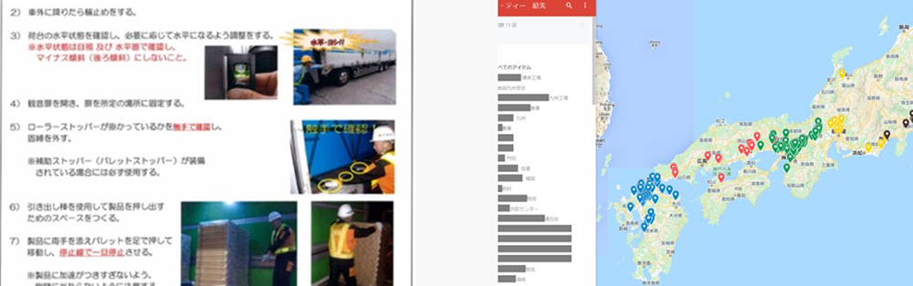 当社のフリー運行は、どのドライバーが担当しても、お客様に高品質なサービスを提供できるよう、徹底した情報共有を行っています。納品先の詳細な軒先情報や荷扱い方法をデジタルでマニュアル化。誰もが確認できるマップとマニュアルにより、荷扱い事故ゼロを目指し、安全でスムーズな運行を実現します。