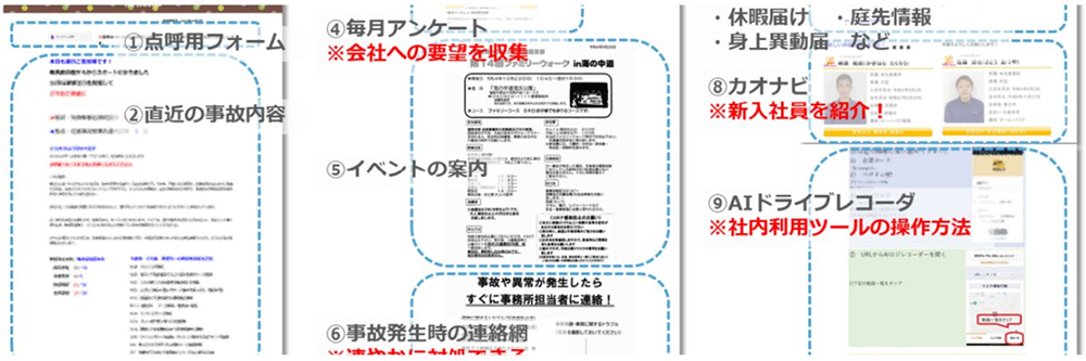 当社の社内イントラサイトは、ドライバーの皆さんが日々の業務をスムーズに進めるための大切なツールです。最新の配車情報や得意先の詳細マニュアル、安全運行に関する通知などをリアルタイムで共有。運行中に必要な情報にいつでもアクセスでき、経験の浅いドライバーでも安心して業務に取り組めます。
