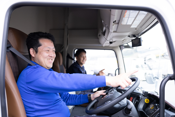 先輩ドライバーの運転するトラックに乗り、隣で実際のお仕事を学びます。初めは緊張するかもしれませんが、明るく優しい先輩ばかりで皆さん仲良く過ごしています。